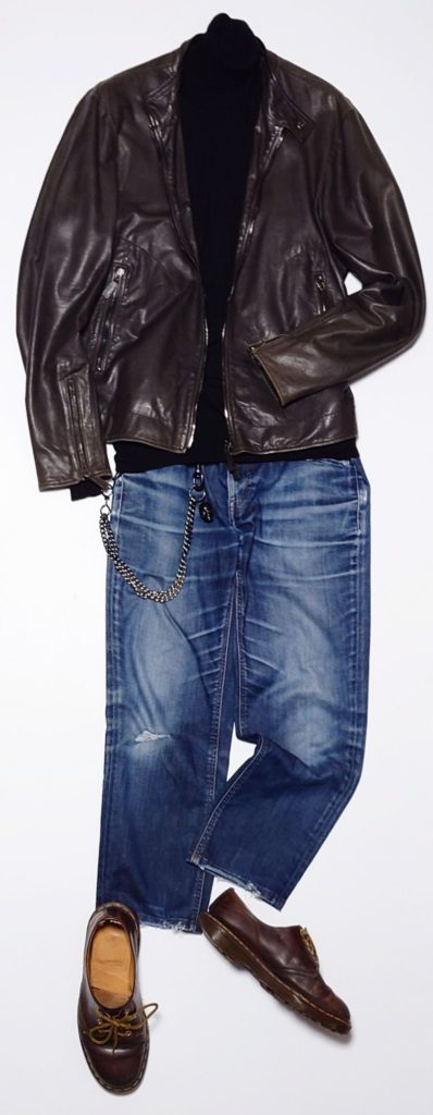 意外かもしれませんが、ライダースジャケットはフォーマルなスタイルにも取り入れることができます。スリムフィットのスラックスやウールパンツと合わせ、インナーにはシャツや薄手のセーターを選びましょう。足元には、革靴やブーツを合わせると、フォーマルながらも個性的なスタイルが完成します。