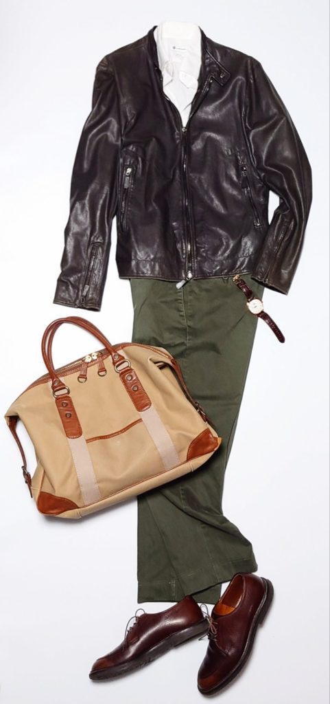 ライダースジャケットをスマートカジュアルなスタイルに取り入れる場合は、スリムフィットのパンツやシャツと合わせるのがおすすめです。インナーには、シンプルなシャツやタートルネックのセーターを合わせると、エレガントな印象を与えます。また、足元にはローファーや革靴を選ぶと、より洗練されたスタイルになります。